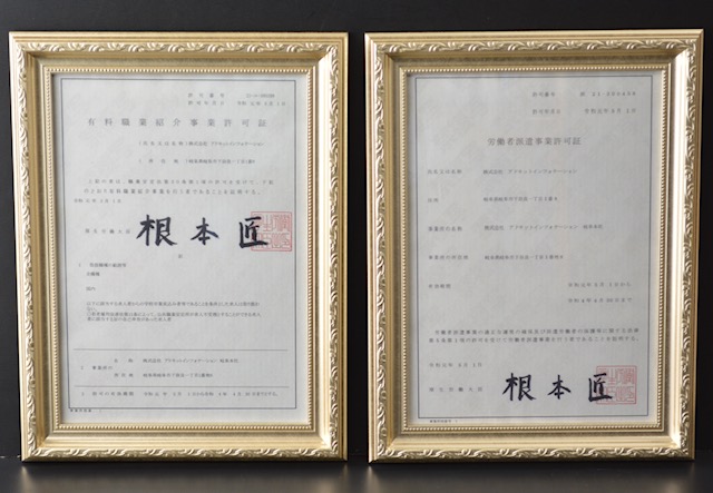 厚生労働大臣 有料職業紹介事業許可番号 21ーユー300288 許可年月日 令和 元年 5月1日